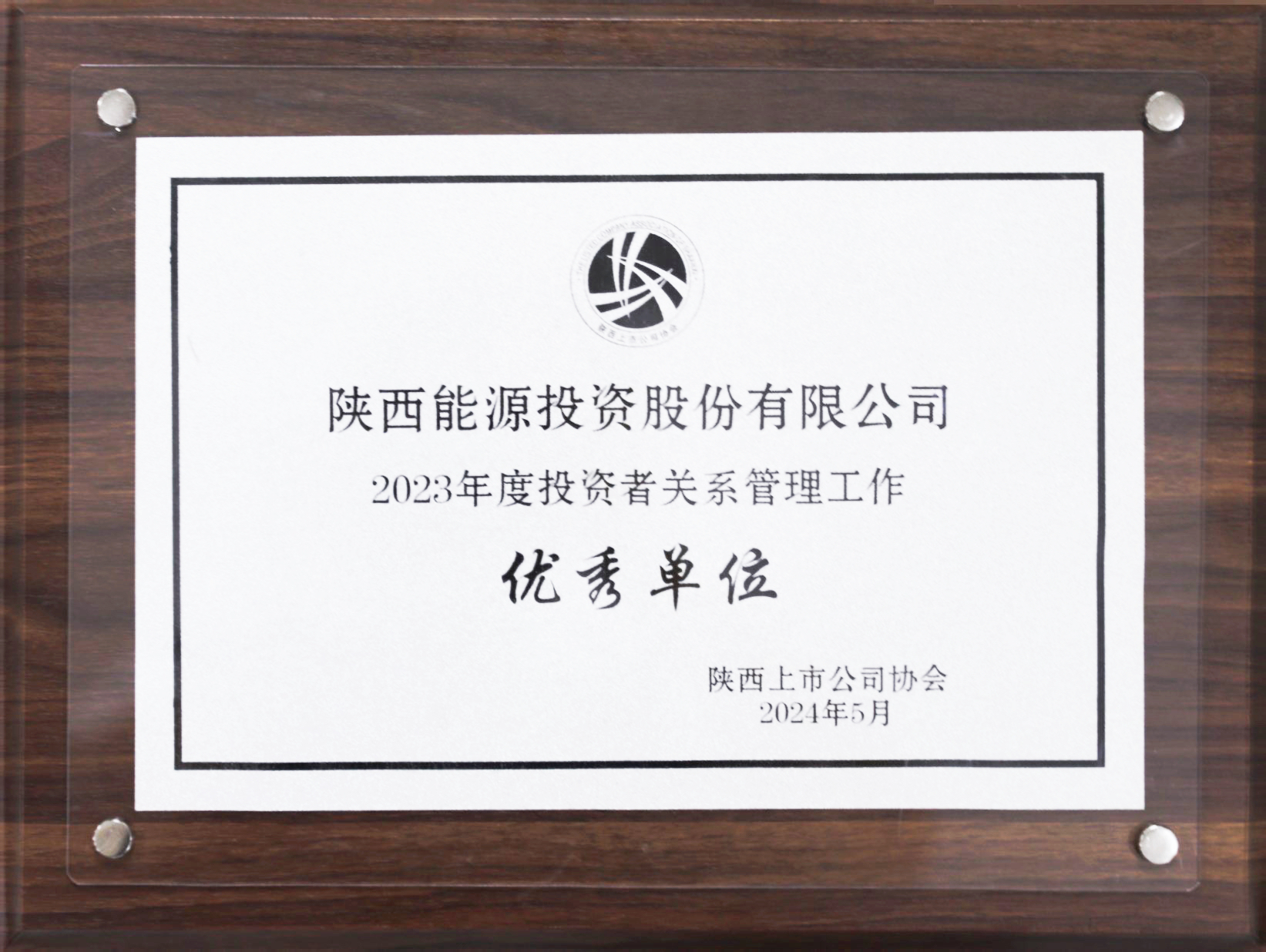 5月15日,陜西能源榮獲陜西上市公司協會頒發的“2023年度投資者關系管理工作優秀單位”。陜西能源上市以來,始終聚焦主業,致力于保持長期穩定發展,面對資本市場的復雜環境,堅持誠實守信、真實透明、規范治理,持續提升公司內在發展質量,高度重視投資者關系管理,在信息披露、投資者溝通機制建設、市場形象打造等方面取得了豐碩成果,并積極回饋投資者、保護投資者利益,推動公司實現高質量發展。
