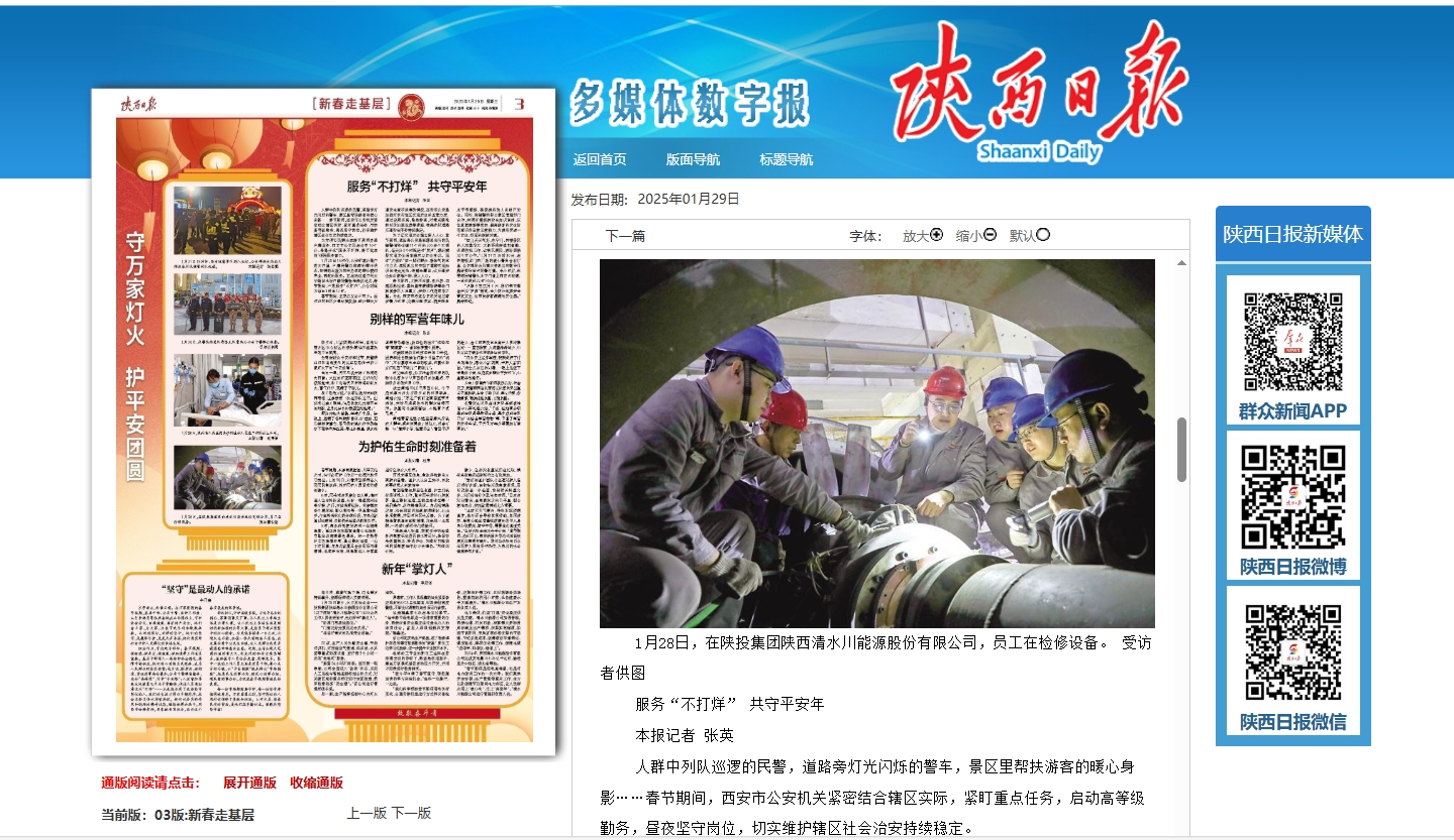 1月28日除夕,火力發(fā)電企業(yè)——陜投集團(tuán)陜西清水川能源股份有限公司(以下簡(jiǎn)稱(chēng)“清水川能源公司”)400余名工作人員值班值守,當(dāng)好新年“掌燈人”。
